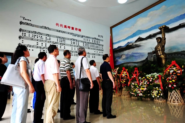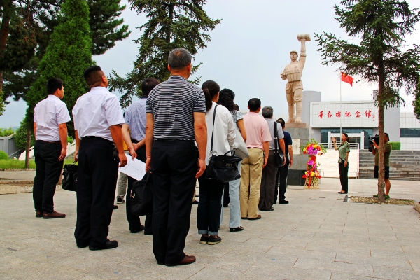 29日下午2點(diǎn),與會(huì)代表乘車(chē)來(lái)到位于懷來(lái)縣南山堡村的董存瑞烈士紀(jì)念館接受紅色傳統(tǒng)教育。在英雄舍身炸碉堡的塑像前,代表們向革命英雄獻(xiàn)上花籃,并行三鞠躬禮,表達(dá)對(duì)烈士的無(wú)限崇敬。在紀(jì)念館展廳,大家跟隨著講解員的介紹,觀看了珍貴的圖片和實(shí)物,對(duì)董存瑞的成長(zhǎng)歷程和英雄業(yè)績(jī)有了生動(dòng)的了解,為革命烈士為了新中國(guó)的誕生付出鮮血和生命的壯舉而深深震撼。