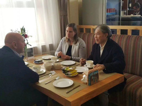 國際滑雪聯(lián)合會主席卡斯珀與接待人員合影