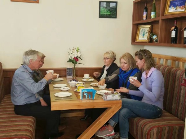 11日下午和12日上午,考察團(tuán)大隊(duì)人馬兩次蒞臨下花園服務(wù)區(qū)。經(jīng)過長途旅行后,服務(wù)區(qū)清新干凈的衛(wèi)生間、溫馨舒適的咖啡屋和彬彬有禮的接待人員給團(tuán)員們留下了良好的印象,洋溢在他們臉上的笑容就是最好的評語?疾靾F(tuán)成員興致勃勃地品嘗了香濃的咖啡和當(dāng)?shù)氐臅r鮮果品,經(jīng)過短暫休整后,乘車返京。