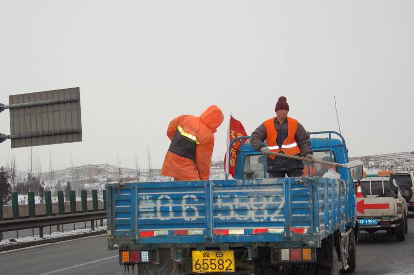 從3月7日傍晚開始,又一場(chǎng)中雪降臨到京張高速沿線。正值“兩會(huì)”召開之際,道路保暢成為重中之重。公司迅速行動(dòng),采取機(jī)械作業(yè)和人工灑布相結(jié)合的方法,及時(shí)灑布融雪劑、清除道路積雪,保證了道路暢通。