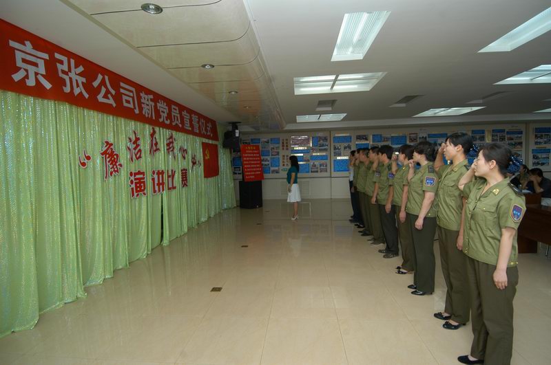 面對(duì)黨旗,舉起右手,緊握拳頭,莊嚴(yán)宣誓:“我志愿加入中國共產(chǎn)黨,擁護(hù)黨的綱領(lǐng),遵守黨的章程,履行黨的義務(wù),執(zhí)行黨的決定……”。在紀(jì)念建黨88周年之際,公司黨委在四樓會(huì)議室為今年新加入中國共產(chǎn)黨的武志麗等10名同志舉行了入黨宣誓儀式。公司黨辦室主任石林叢同志主持儀式并領(lǐng)誓。