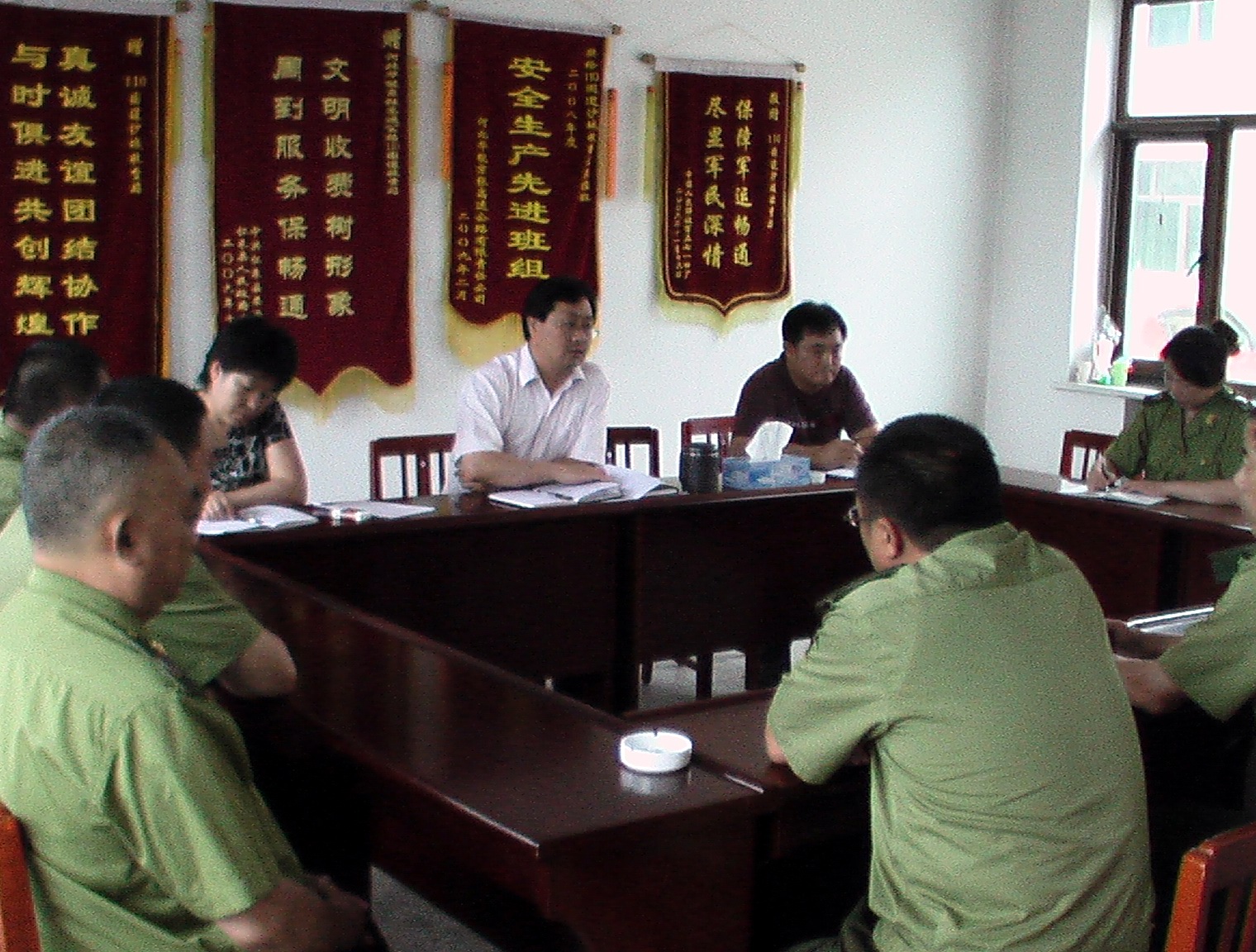 7月17日,110國(guó)道沙城收費(fèi)站黨支部組織全體黨員召開會(huì)議,討論預(yù)備黨員王輝同志的轉(zhuǎn)正問(wèn)題。會(huì)議由站黨支部書記吳桂金同志主持。