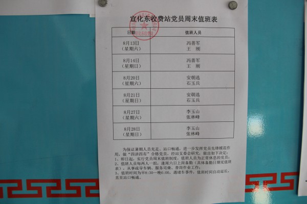 宣化東收費(fèi)站制定黨員周末值班表