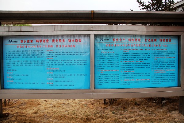 近日,宣化東收費(fèi)站對(duì)站院內(nèi)展板進(jìn)行更換。更換后展板煥然一新,引來(lái)廣大職工駐足觀看。展板內(nèi)容主要包括公司2014年全年工作思路、任務(wù)目標(biāo)和措施,對(duì)公司2014年全年運(yùn)營(yíng)管理工作主要工作內(nèi)容進(jìn)行了重點(diǎn)節(jié)選,使全體職工在做到心中有目標(biāo),肩上有重?fù)?dān),積極努力做好自己的本職工作,為完成全年的工作目標(biāo)任務(wù),獻(xiàn)計(jì)獻(xiàn)策,添油加勁。(宣化東收費(fèi)站 王輝)