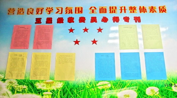 6月23日,宣化東收費(fèi)站利用宣傳欄開設(shè)《五星級(jí)收費(fèi)員心得?,帶動(dòng)全站職工學(xué)先進(jìn),促發(fā)展,營(yíng)造“比、學(xué)、趕、幫、超”的良好氛圍。