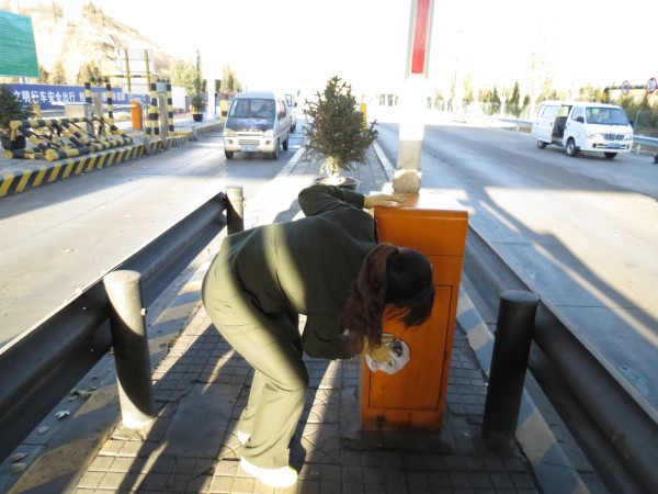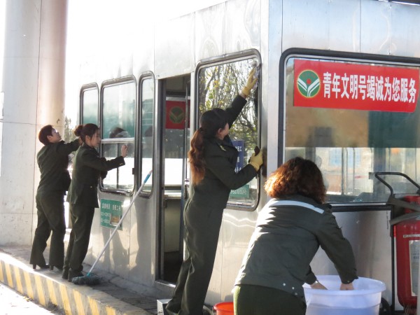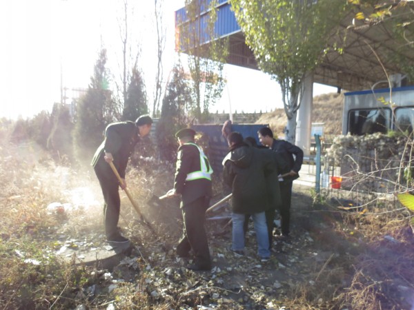 活動當天,收費廣場到處可見職工忙碌的身影,有的倆三人一組用抹布擦洗收費亭墻壁、門窗及防護網(wǎng);有的用掃帚清掃廣場、車道的落葉、煙頭和紙屑;有的用鐵鍬清除綠化帶、溝渠、旱廁及垃圾池周邊的雜草、碎石及生活垃圾;有的拾撿草叢中的白色垃圾。經(jīng)過大家近一個半小時緊張有序的清理,站口環(huán)境面貌煥然一新。