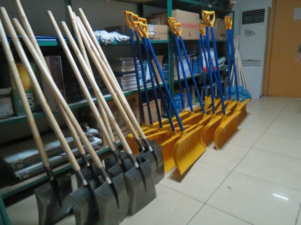 截止目前,新推雪板、鐵鍬共計(jì)30余把全部組裝就緒,同時(shí)對(duì)原有損壞的推雪板、鐵鍬、大掃帚進(jìn)行捆綁加固,F(xiàn)庫(kù)存推雪板達(dá)到40把,鐵鍬15把、大掃帚15把。融雪劑30袋已全部擺放到位。各項(xiàng)除雪物資準(zhǔn)備工作已經(jīng)全部完成。(下花園收費(fèi)站 耿海亮)