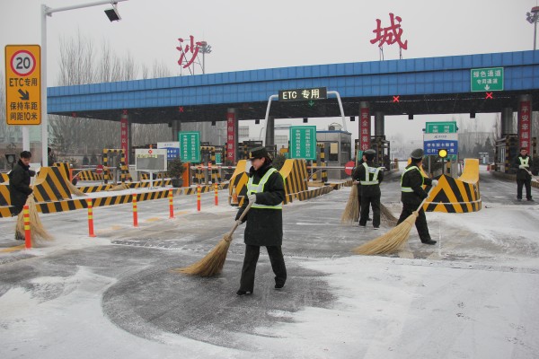 1月14日凌晨,懷來地區(qū)迎來入冬以來的第一場(chǎng)降雪。沙城收費(fèi)站及時(shí)啟動(dòng)惡劣天氣處置預(yù)案,全面做好除雪保暢工作。當(dāng)班人員在車道和廣場(chǎng)緊急播撒融雪劑,確保車輛安全通行,并增加 “降雪天氣,請(qǐng)您注意行車安全!”等文明用語(yǔ)。站領(lǐng)導(dǎo)第一時(shí)間安排部署,組織職工全面清除收費(fèi)廣場(chǎng)及站區(qū)積雪,為大家安全通行提供保障。(沙城收費(fèi)站 高麗贇)