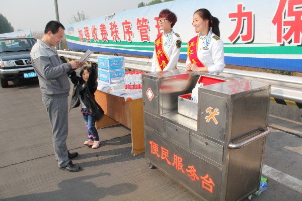 五一期間,宣化東收費站在做好費收工作的基礎(chǔ)上,按照公司“以車為本”的服務(wù)理念,擴展服務(wù)內(nèi)容,組織黨員青年開展多項便民服務(wù),受到了過往司乘人員的歡迎。