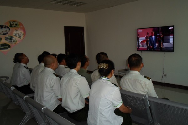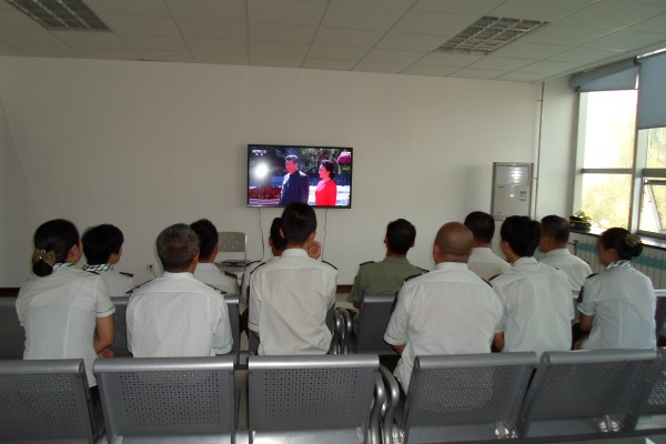 東花園收費站組織職工觀看抗戰(zhàn)勝利70周年閱兵儀式直播