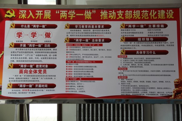 展板以“深入開展‘兩學(xué)一做’推動支部規(guī)范化建設(shè)”為標題,把今年“兩學(xué)一做”學(xué)習(xí)教育和支部工作規(guī)范化建設(shè)兩項重點工作結(jié)合起來,使兩者相互補充、相互促進。展板對什么是“兩學(xué)一做”、開展“兩學(xué)一做”的目的、要求、措施以及“兩學(xué)一做”開展的時間、教育對象等內(nèi)容進行了分類解讀,使職工易看易懂。
