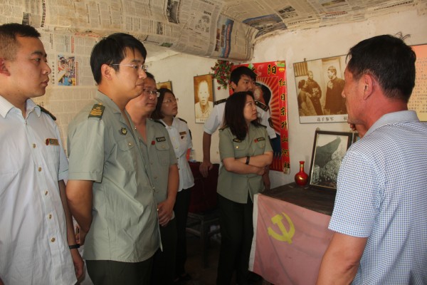 古舊的毛澤東畫像、大紅色的抗日標語、激昂的工農(nóng)兵壁畫,仿佛看到當年黨員們高漲的革命熱情。鎮(zhèn)邊城村黨支部書記張福成向黨員們介紹了“第一黨支部”的成立情況,講述了抗日戰(zhàn)爭年代革命先輩們?yōu)榱诵轮袊慕夥艎^不顧身、拋頭顱灑熱血的英勇事跡。