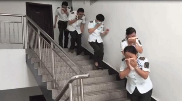 演練現(xiàn)場,首先由總指揮孫曉寧詳細(xì)講解和示范室內(nèi)發(fā)生火災(zāi)時正確的逃生方法,然后以員工宿舍突發(fā)火災(zāi)事故為模擬現(xiàn)場,嚴(yán)格按照火災(zāi)逃生疏散演練程序進(jìn)行操作。演練時,員工第一時間進(jìn)行緊急疏散和有序逃生,用濕毛巾掩鼻呼吸,彎腰前行迅速從就近安全出口撤離現(xiàn)場。在保證室內(nèi)人員安全疏散的同時關(guān)閉宿舍樓電源總閘和撥打119火警電話報警。
