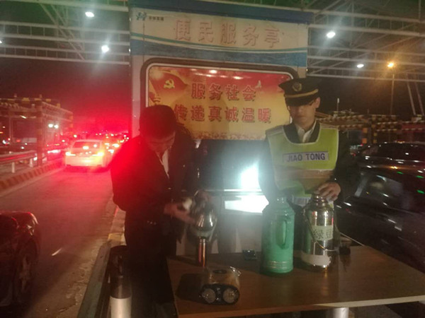 緩慢行駛的車流,一閃一閃的尾燈,點(diǎn)綴著似藏青色的夜空,國慶節(jié)小長(zhǎng)假第四天的夜晚,因返京車輛逐漸增多,并且多地發(fā)生追尾事故,東花園主線站入京車流量較大,值班站長(zhǎng)吳占強(qiáng)迅速組織黨員干部及備勤人員到崗,在收費(fèi)廣場(chǎng)醒目位置設(shè)立了便民服務(wù)臺(tái)。堅(jiān)守在一線的黨員干部及職工們以“有我堅(jiān)守、為你護(hù)航”的工作信念,細(xì)致周到的服務(wù)熱情,為過往司乘人員提供飲用水、藥品、路況信息等多項(xiàng)便民服務(wù),耐心地為司乘人員答疑解難和指示行車路線,贏得了過往司乘的一致贊譽(yù),使司乘人員行駛京張高速一路無憂。(東花園收費(fèi)站 王燕吉)