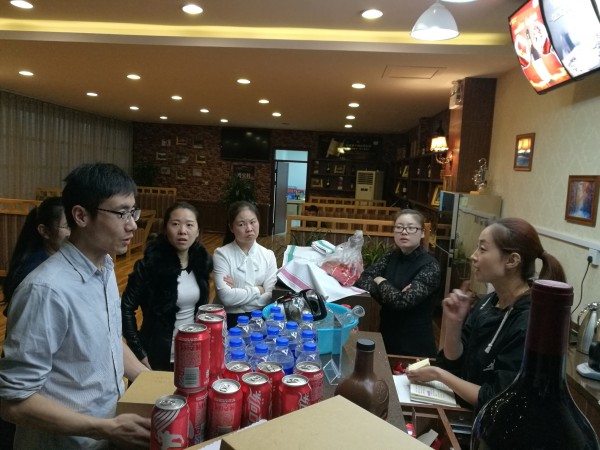 三、咖啡專業(yè)知識的再次加強:在忙碌了一天后,大家并沒有早早休息,特聘專業(yè)咖啡師為大家講解咖啡制作流程和手法的重要性;對牛奶、咖啡豆等配料進行了細致的分辨,并討論接待人員的著裝、站位、以及餐具的擺放位置等工作細節(jié)。