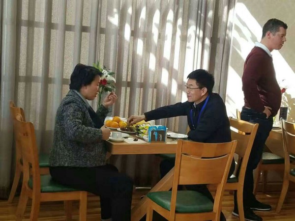 張家口市市長馬宇俊陪同奧組委成員在咖啡屋停留休息