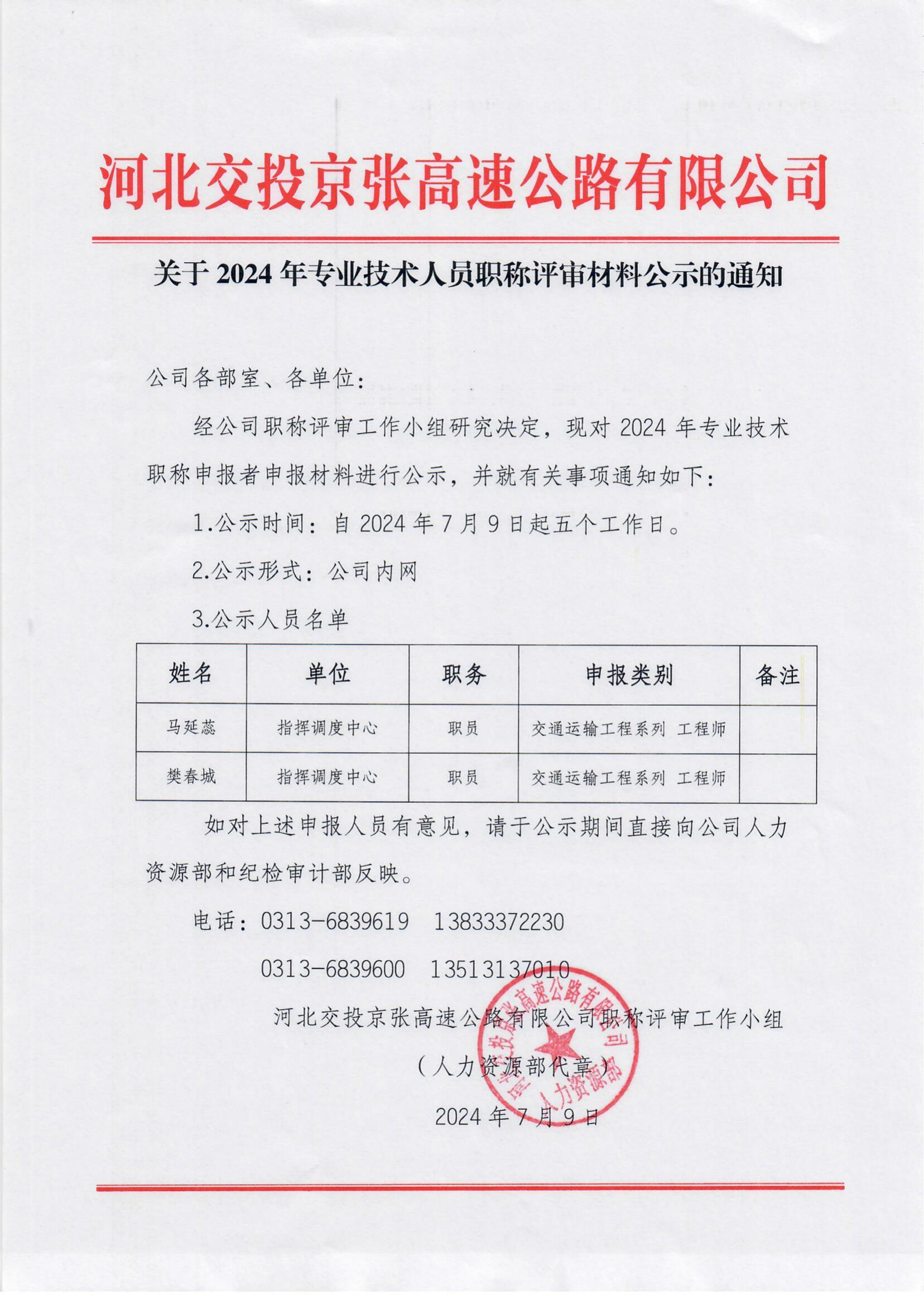 關(guān)于2024年專業(yè)技術(shù)人員職稱評審材料公示的通知