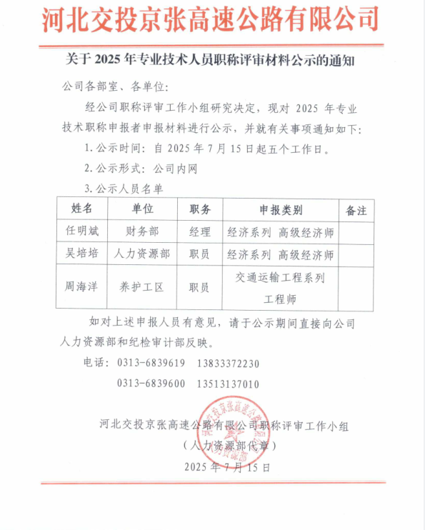 關(guān)于2025年專業(yè)技術(shù)人員職稱評審材料公示的通知
